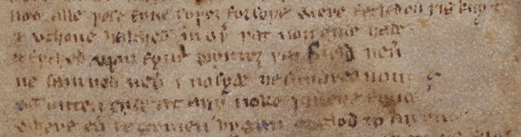 Detail of lines 656-61 of Sir Gawain and the Green Knight as they appear in MS Cotton Nero A.x. (art. 3). c. 1400 British Library / University of Calgary, Libraries and Cultural Resources. image: http://gawain.ucalgary.ca/